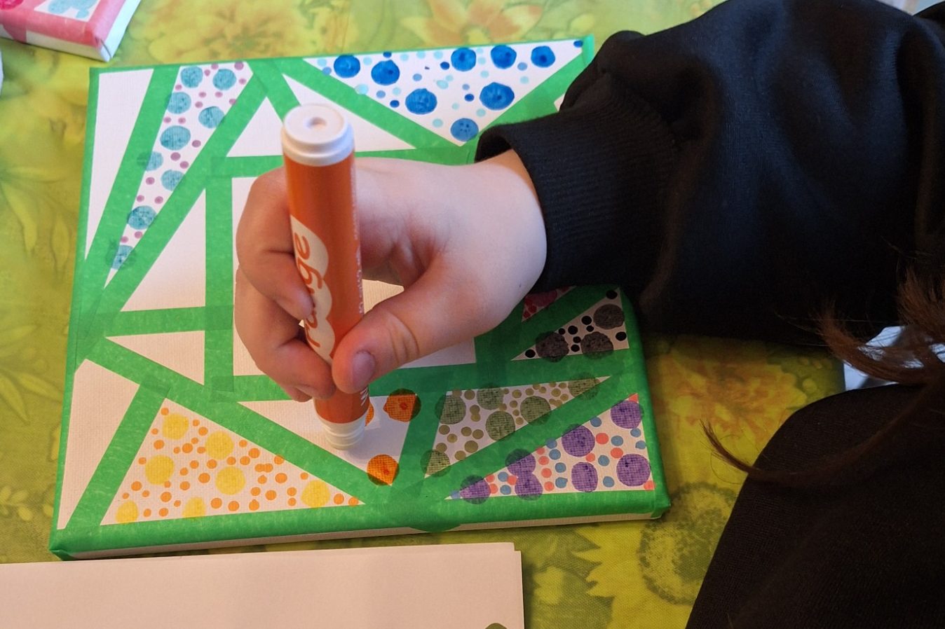My children’s sessions are all about fun, imagination, and creativity. Each workshop gives children the chance to explore colour, pattern, and design through the playful art of dot painting.